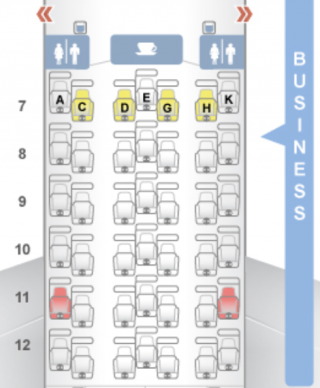 The seats are positioned slightly offset to one another so that even if you’re sitting in the middle seat or by the window, you have direct aisle access and do not need to step over your neighbor.
