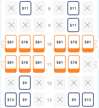 All of these options incur an additional fee. The amount you’ll pay for a specific seat assignment will depend on where you’re sitting, as the example shows below.