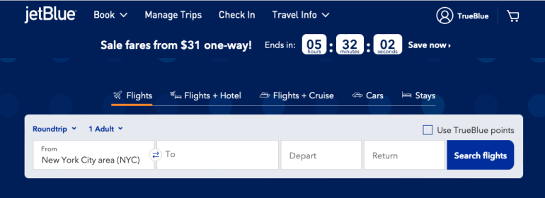 JetBlue operates on a dynamic pricing system for its reward flights. This means that the number of points you’ll redeem will be directly tied to the cash price of a flight. Your best bet for good value — whether with cash or TrueBlue points — is to find a cheap cash flight.