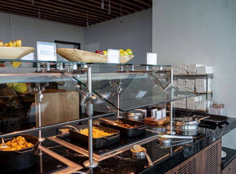 Buffet-style dining at the Centurion Lounge at JFK. (Photo by Elina Geller)