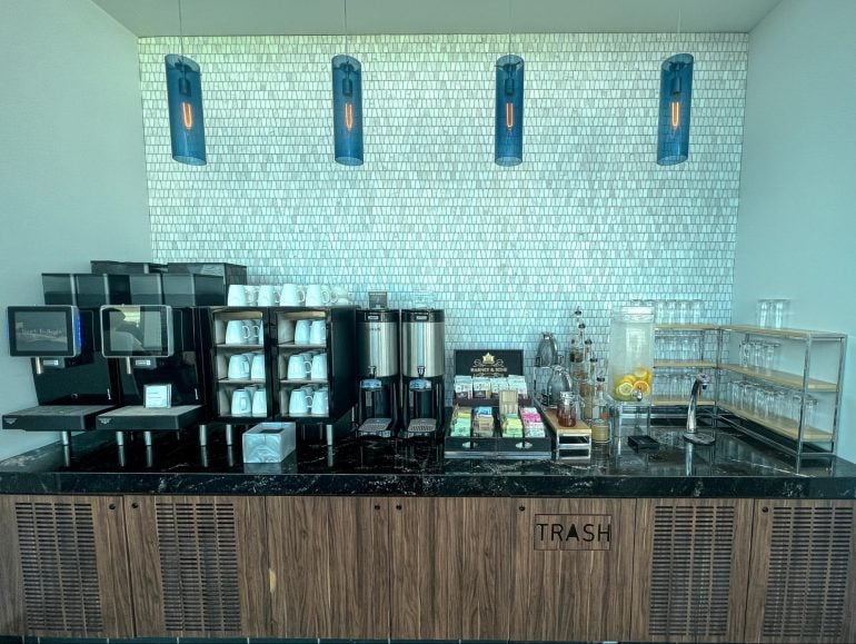 Coffee and tea station at the Centurion Lounge at JFK. (Photo by Elina Geller)