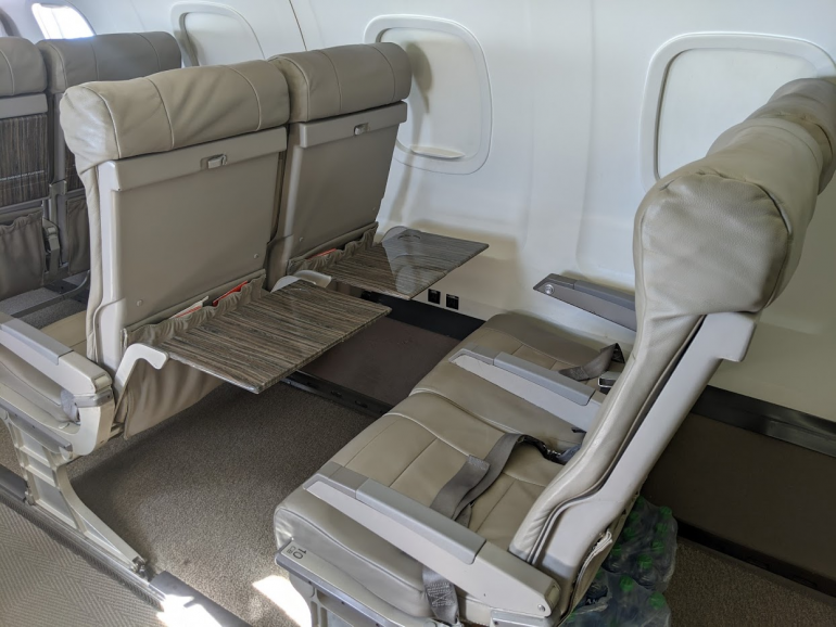 JSX's FAA certification limits JSX to 30 seats on each aircraft. That means there can be awkwardly large gaps at the front and back of some aircraft.