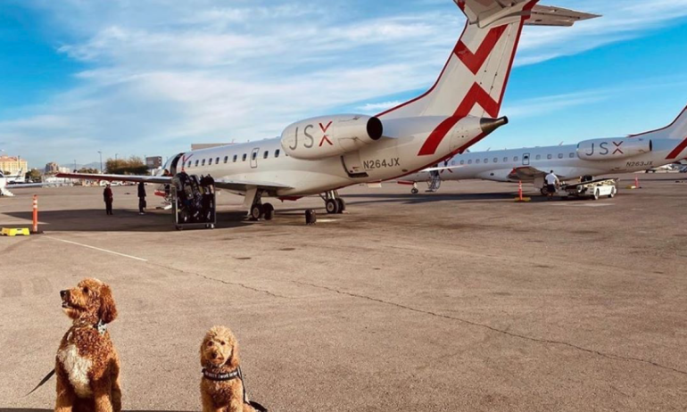 JSX, a semi-private air carrier, is one of the only U.S. operators to let pets fly for free in the cabin. (Photo courtesy of JSX)