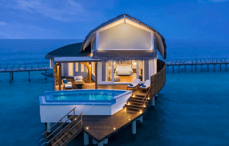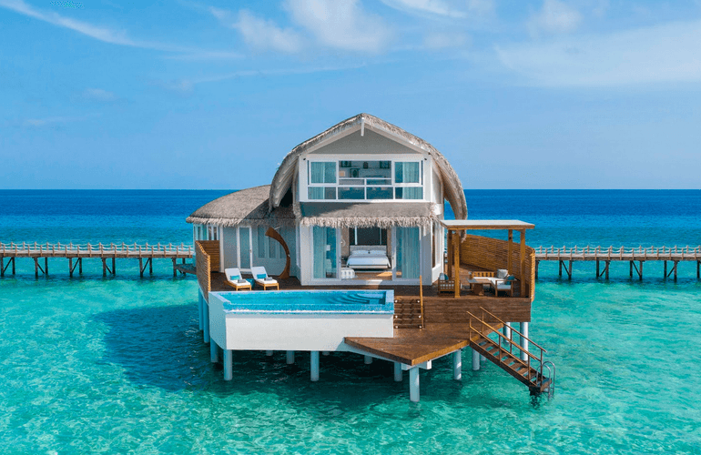 Vacation paradise can take various forms for different people. Still, the image that comes to mind for many is the dream of an overwater villa hovering over turquoise-blue water. JW Marriott Maldives Resort & Spa is the quintessential example of that, although the Maldives, in general, is not lacking in spectacular overwater villa resorts.
