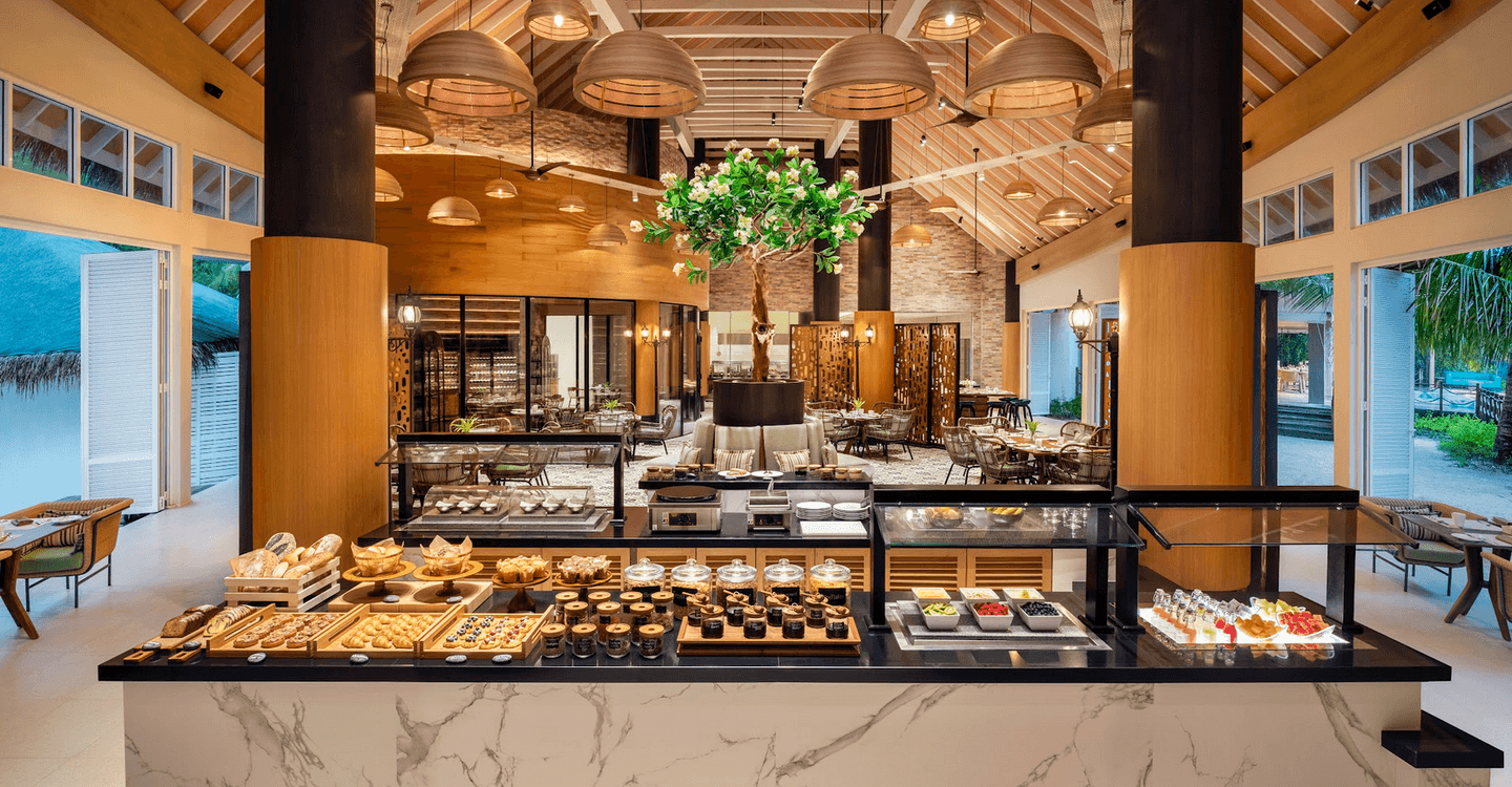 You're mistaken if you think you'll go hungry or tire of the fare on this private island. For such a small property, this resort has plentiful dining options. Aailaa is an all-day dining venue serving three meals. The breakfast buffet includes several cooked-to-order stations for eggs and Indian dosas. There's also a Maldivian, Indian and Chinese station, a fresh juice stand and numerous options for vegetarians and vegans.