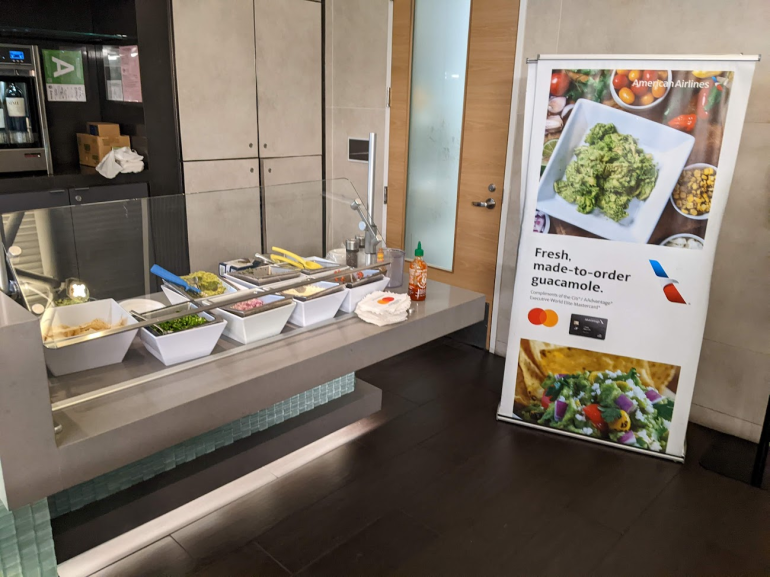 A guacamole station isn't available in the American Airlines Flagship Lounge. However, we've found that lounge agents don't mind if you cross over to the Admirals Club to get some fresh-made guacamole. So you might get compliments for knowing about this hack.