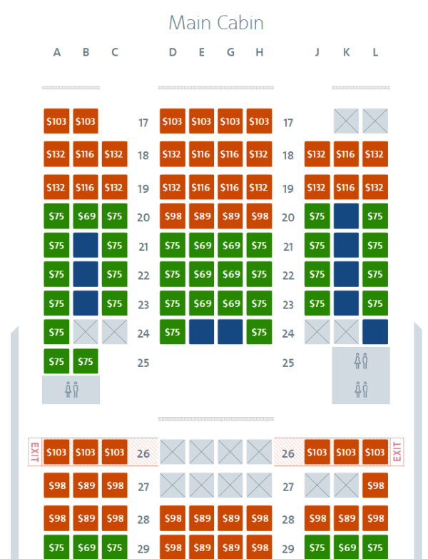Main Cabin Extra prices vary based on the length of the flight and the type of seat. Window and aisle seats often cost more than middle seats, and seats in the front of the cabin can cost more than those further back.