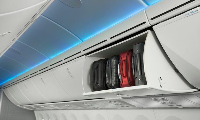 American uses placards to reserve overhead bin space for Main Cabin Extra flyers. (Photo courtesy of American Airlines)