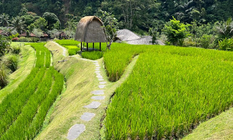 Ubud is known for its jungles, and that’s reflected in the well-manicured greenery on the property. Mandapa even has working rice fields, where guests can learn about subak, the Balinese irrigation technique.