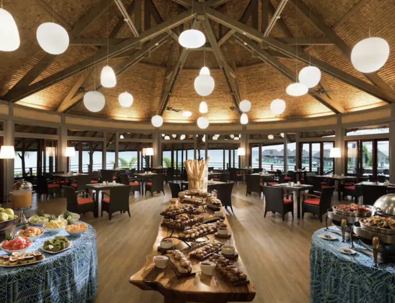 Hilton Moorea Lagoon Resort and Spa’s breakfast spread. (Photo courtesy of Hilton)