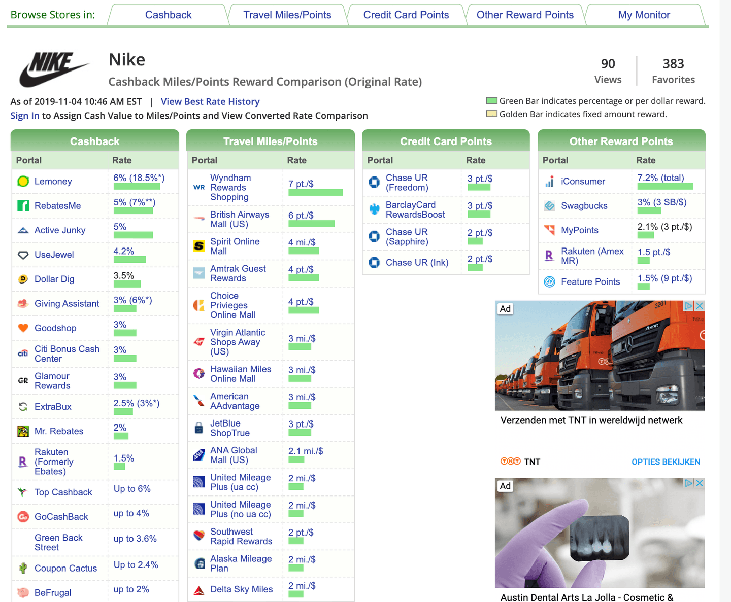 Let’s say, for example, you're shopping on Nike.com. Check CashbackMonitor for current shopping portal offers.