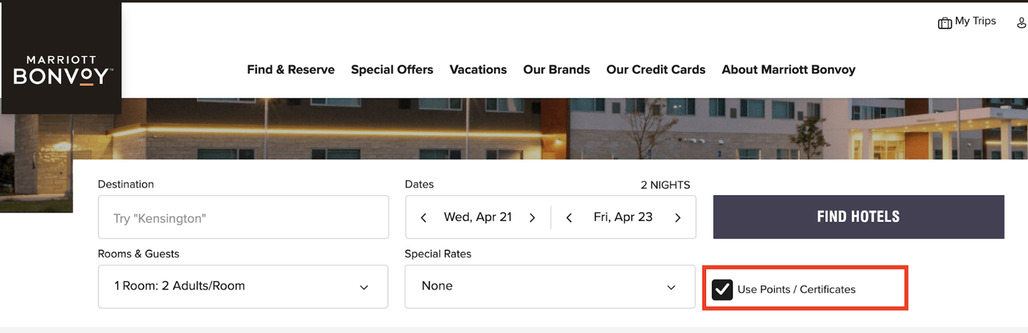 To use your points with each of these programs, search for hotel rooms through the website or app, usually selecting “use points” or a similar function on the search tool. For some programs, you must be logged into your reward account to search.