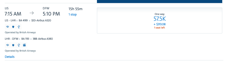If the pull for a flat bed across the Atlantic is strong but you’re faced with British Airways as your only available award option, this trick could help you save hundreds of dollars: Try flying through, rather than from, London, if you have the flexibility to do so. A business-class flight from Lisbon, Portugal, to Dallas that transits through London commanded $313 in fees at last check: