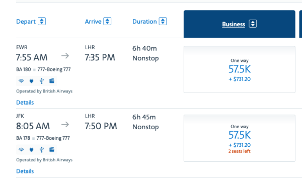 Although British Airways releases a fair amount of award space, there’s another reason their awards are plentiful. Flights in premium cabins often command hundreds of dollars in surcharges in each direction — for instance, over $700 if you’re flying in business out of the New York area: