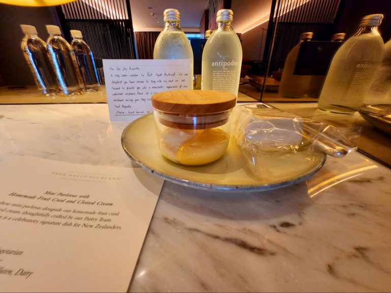 A few minutes after I arrived, I was also surprised with a welcome amenity of Pavlovas with cream and lemon curd. It also included two additional bottles of water.