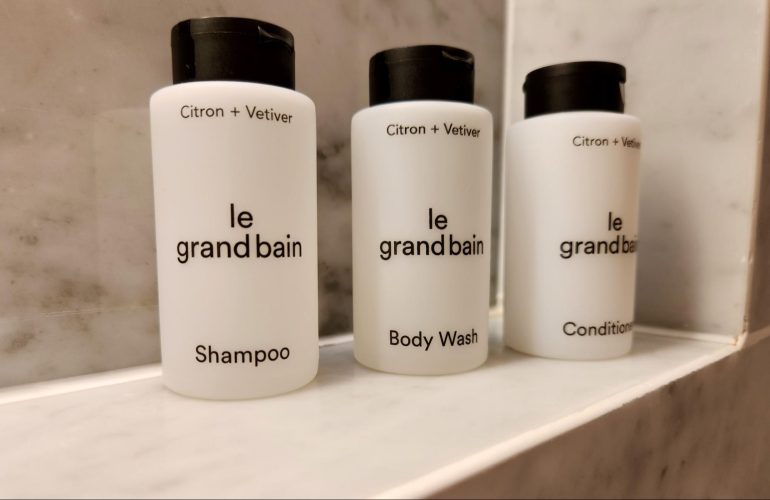 Toiletries in the bathroom were by Citron and Vetiver. I don’t often use hotel toiletries, as I find the quality pretty low (even at really nice hotels), but these smelled nice and were good enough to detangle my hair.