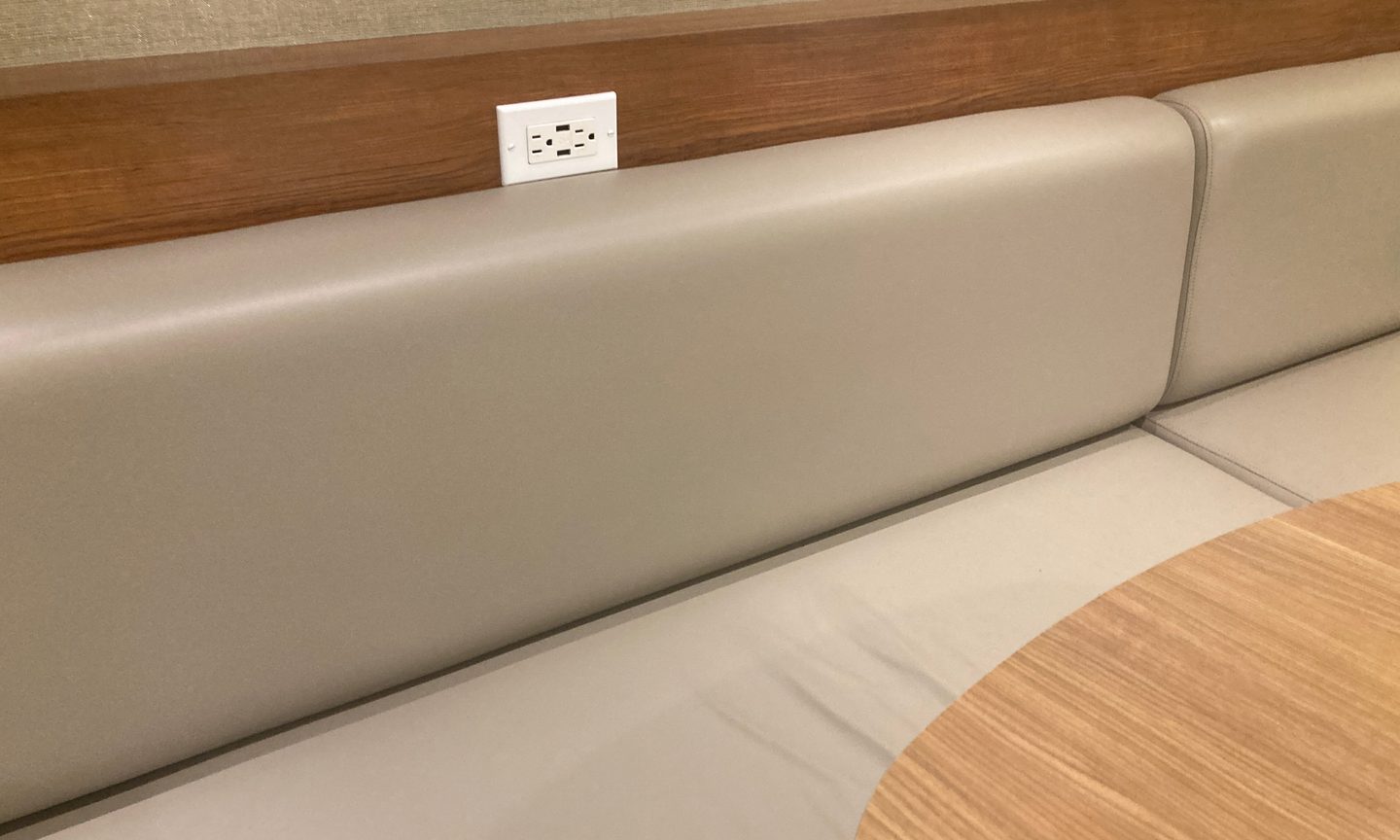There are a few types of seating options, including counter seating, table seating, booths and armchairs. Most have access to power outlets. The Plumeria Lounge also has a strong, lounge-exclusive Wi-Fi network, so it should be easy to get connected before your flight.