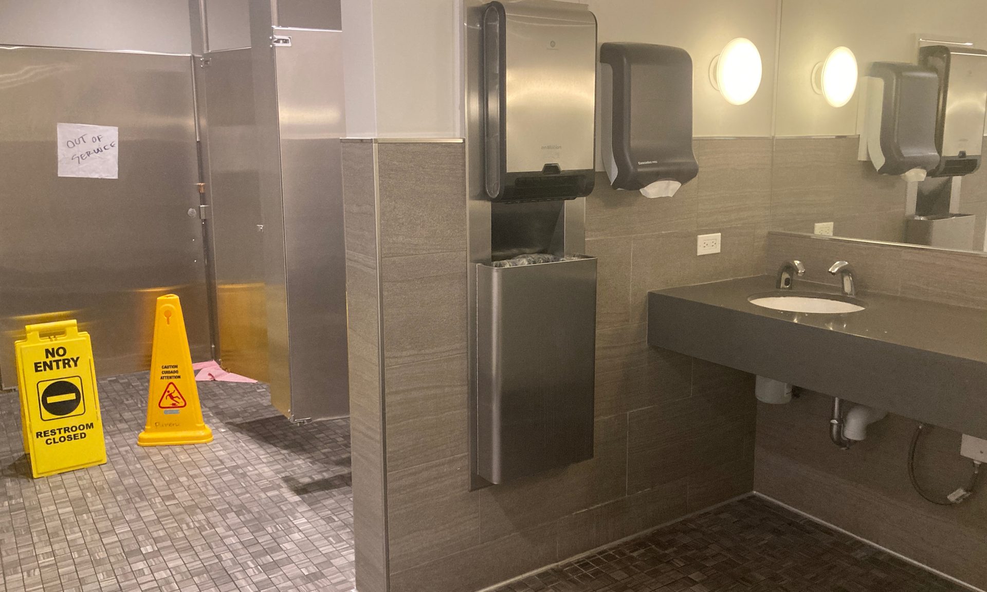 The bathrooms were quite clean. However, during our visit in December 2023, one of the three women's bathroom stalls was out of service.