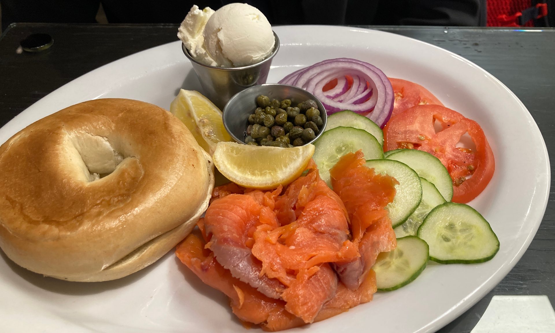 If you're visiting for breakfast, you might get your money's worth by ordering the smoked salmon, served with a bagel.