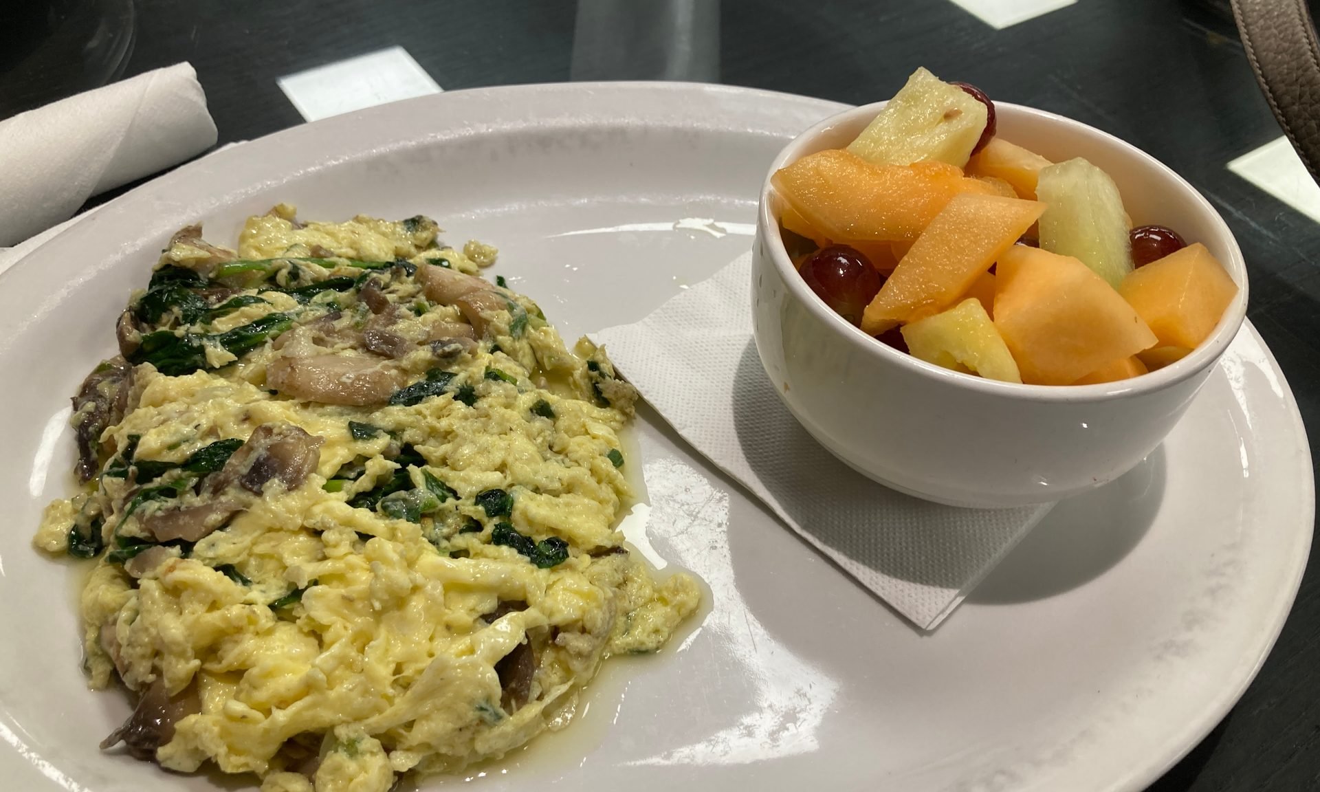 Depending on the time of the day, you might get breakfast items either in addition to or in lieu of the meats and sandwiches. Breakfast items typically include fruit and yogurt.