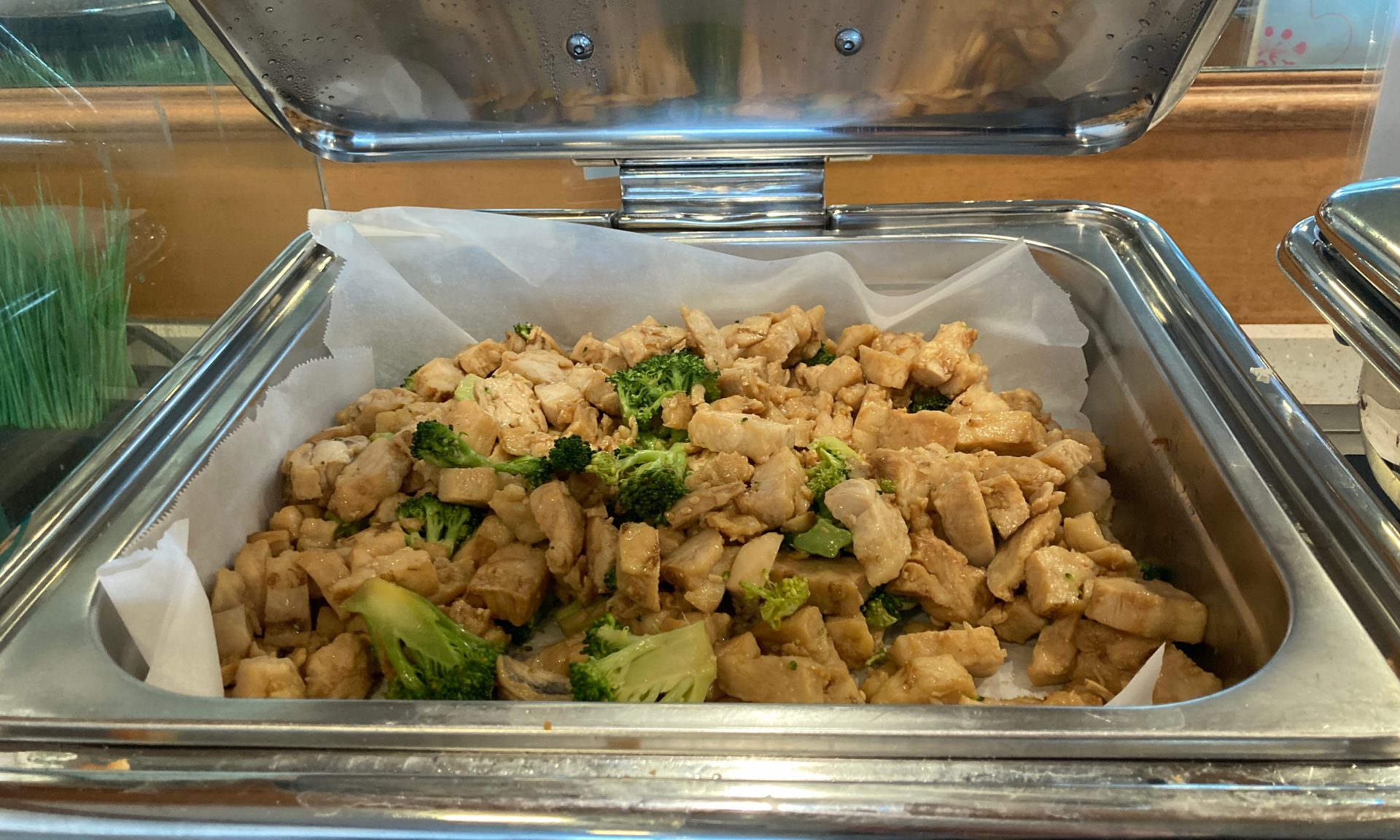 What the food is like: Food is fine, but not great. When we visited, there were two types of pre-made salads, plus an Asian-inspired chicken dish — though that one was drowning in too much sauce.