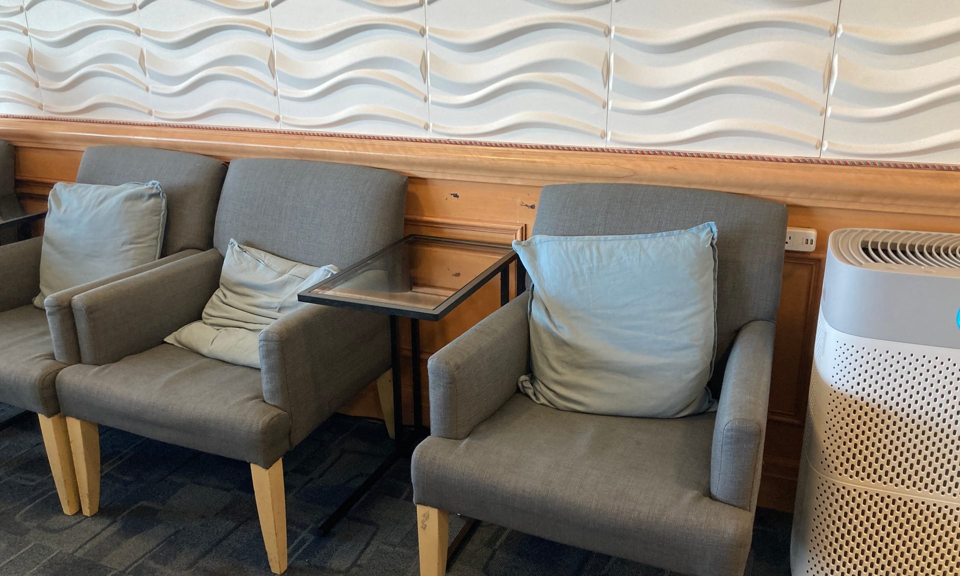 There is a lot of seating, but it can also get fairly crowded. With the mass of chairs and tables in the center of the lounge, it can be easy to feel like you're traipsing through a wilderness of suitcases, particularly if crowds are heavy.