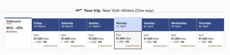 Also look out for Emirates’ fifth freedom flights between the U.S. and Europe, like Newark, New Jersey, to Athens. These cost only 87,500 miles in business class each way.