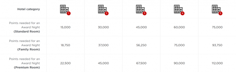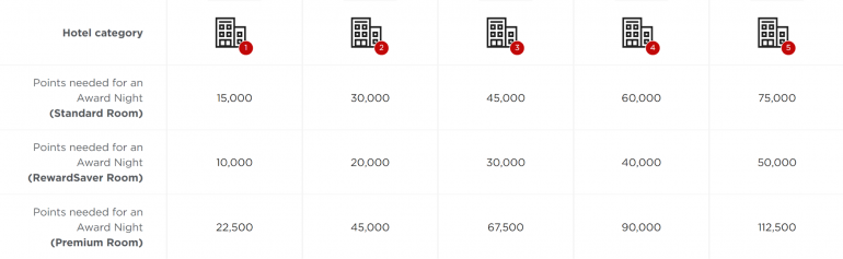Radisson also changed its award chart. Instead of dividing properties into seven categories, the revised chart has just five. Redemption amounts will increase in increments of 15,000 points, starting with Category 1 redemptions of 15,000 points per night and maxing out at 75,000 points per night for a Category 5 redemption.