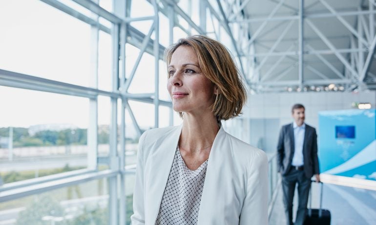 So while it may be your style to wear sweatpants on super long-haul business or first-class flights, if you're traveling with a companion who shows up to the airport dressed to impress, you may want to wear something nicer.