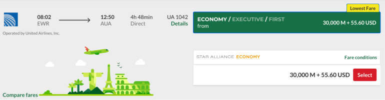 TAP Miles&Go charges 30,000 miles for one-way economy flights within the United States, Canada and the Caribbean, so use this to your advantage by booking award flights operated by United Airlines from the U.S. to Caribbean countries.