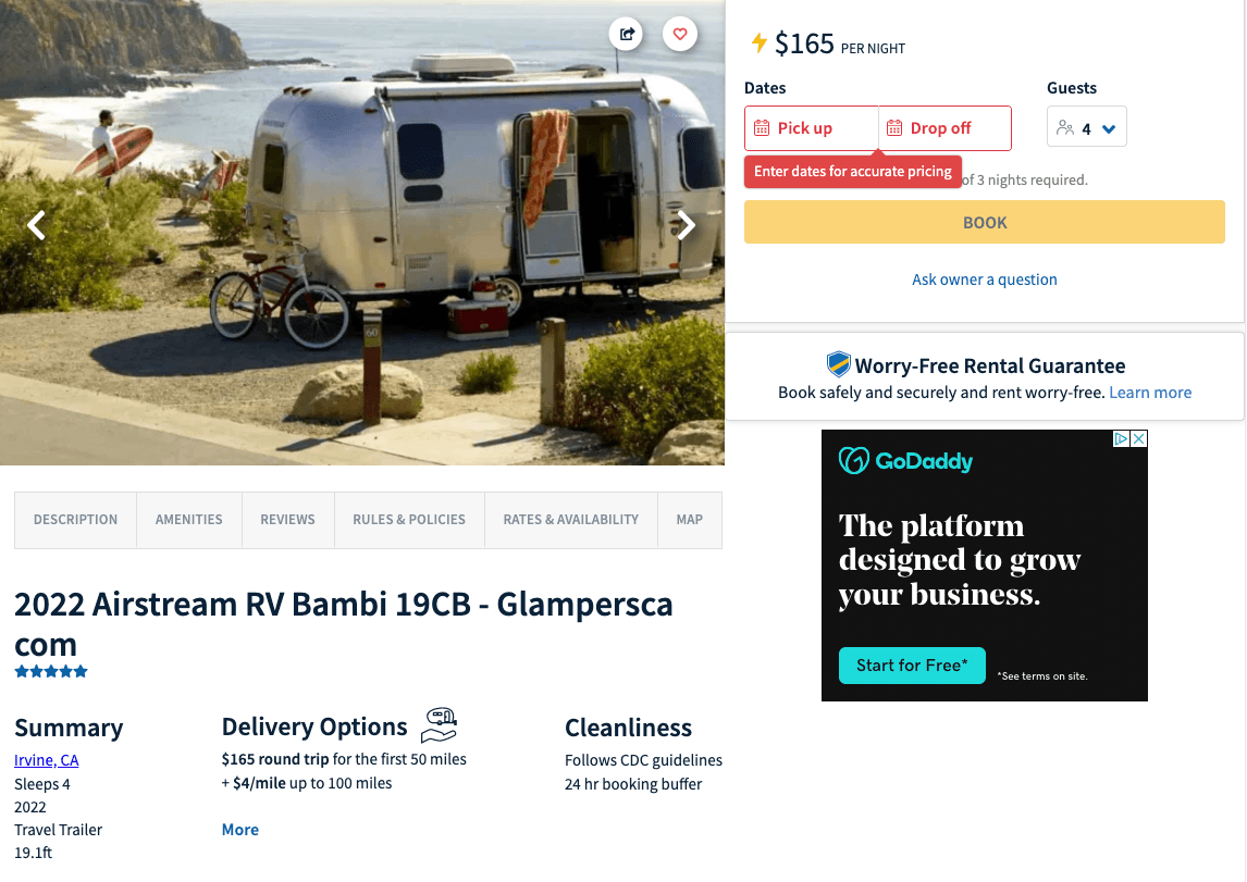 Speaking of insurance, Outdoorsy has a partnership with Assurant to offer liability protection, covering situations including backup accidents, vandalism, fires, stolen RVs and more.
