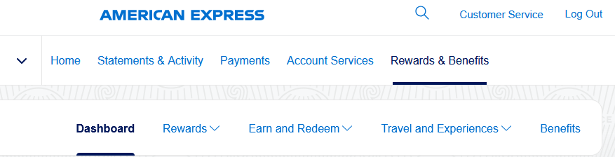 To transfer points from AmEx Membership Rewards to Hilton, log in to your Membership Rewards account and go to the "Rewards & Benefits" button on the menu.