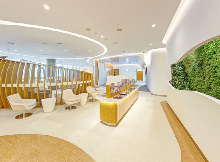 The lounge features showers, work and relaxation areas, a live moss wall and a TV room. There is enough seating for as many as 145 visitors.