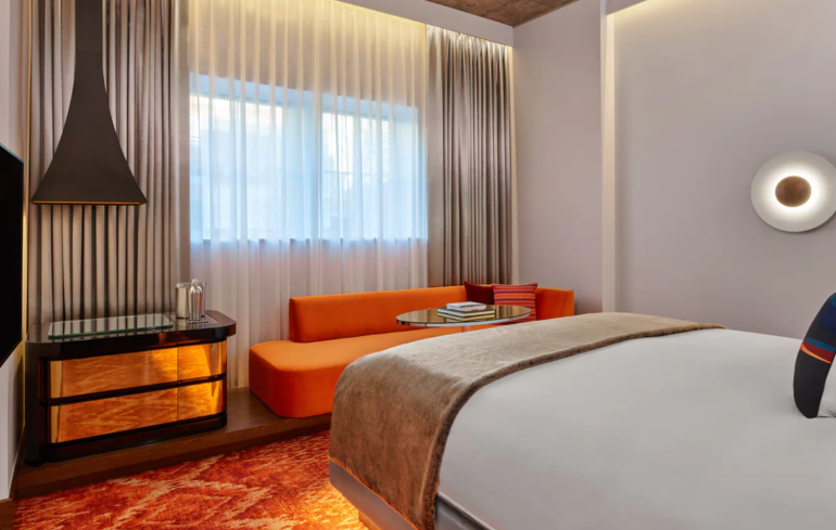 Taking inspiration from the region’s history as well as the ski chalet culture of Switzerland, the resort blends old and new with a penchant for 1970s glitz and glamour. The hotel is modeled after another mountain escape resort, the W Verbier, and even from the outside, its architecture resembles a European ski lodge.
