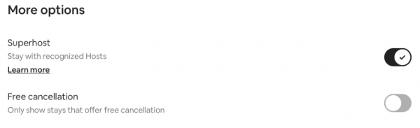 Dedicated search filter. As mentioned above, guests can filter search results to include Superhosts only.