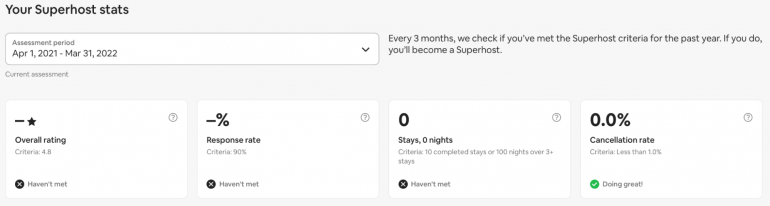 If you don’t meet all these criteria at the same time, you won’t be able to gain or maintain Superhost status.