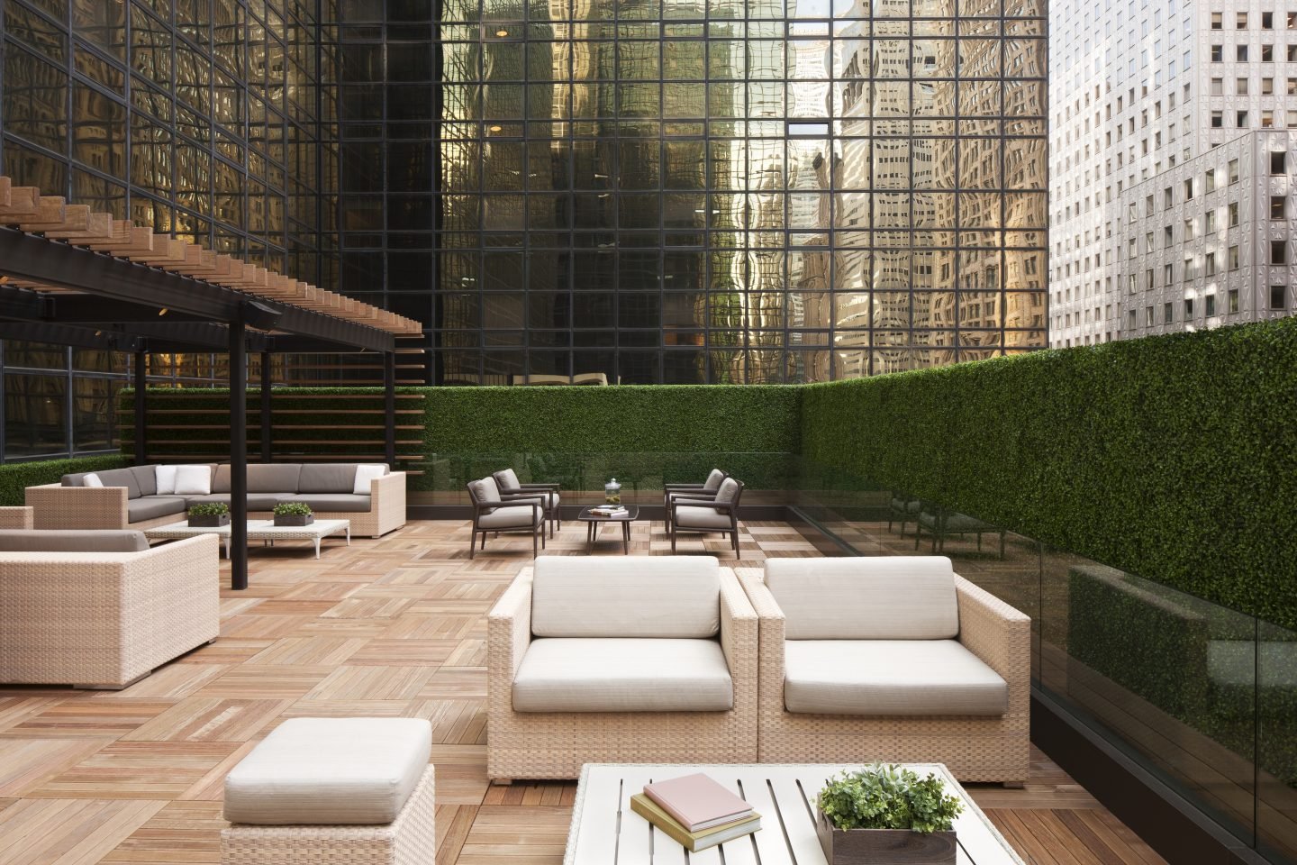 The roof deck at the Grand Hyatt New York lounge offers a reprieve from the bustle of the city. Image courtesy of Hyatt.