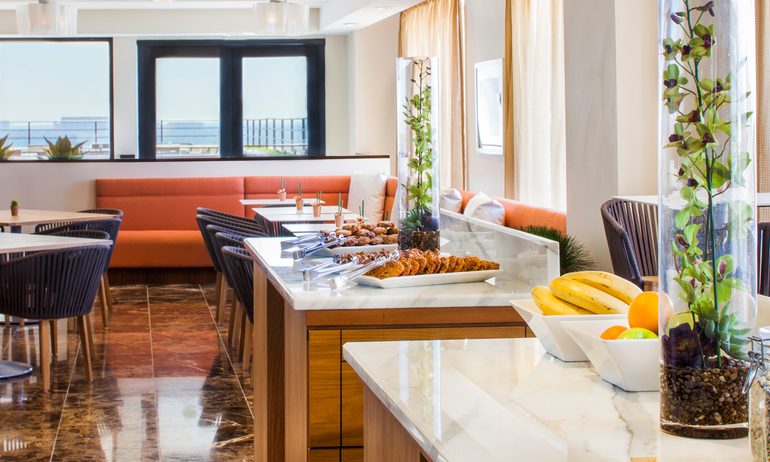 At the Hyatt Regency Orlando, fill up on coffee, pastries, yogurt and fresh foods before a day at the local theme parks — or have a glass of wine at the lounge upon return. Image courtesy of Hyatt.