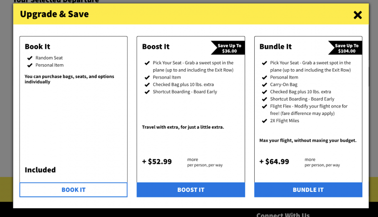 Going back to that same flight between Seattle and Las Vegas, it costs $52.99 more for the Boost It package and $64.99 for the Bundle It package.