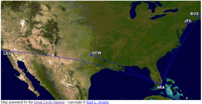 If you enter a specific date, the website will return a list of the flight numbers, routes, and departure and arrival times, as well as an abbreviated code for the type of aircraft being used. The website even generates a map to make it easier to visualize the routes.