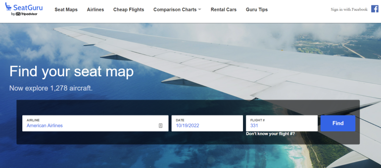 SeatGuru can also be a great resource for travelers looking for an easy way to check the details of a flight. Say you're booked to fly an American Airlines A321 aircraft and want to confirm whether it has lie-flat business class seats. From SeatGuru’s homepage, enter the airline, date and flight number for the flight you want to check. Then, select "find" to search.