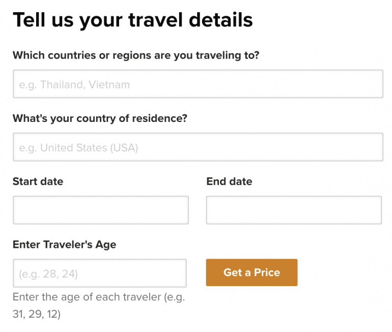 To see the cost of the insurance plan, you will need to input your trip details, your age and state of residence. Unlike many other insurers, you do not need to include the cost of your trip when searching for a World Nomads policy because trip cancellation and interruption benefits are capped at a specific dollar amount rather than a percentage of money spent.