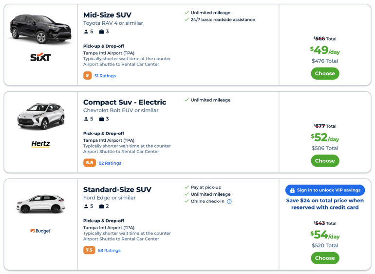 We also searched Priceline for car rentals with other companies, like Budget, Hertz and Sixt, and found non luxury midsize SUVs ranging from $49 to $54 per day (excluding taxes and fees). However, your driving and overall customer service experience will be significantly different.