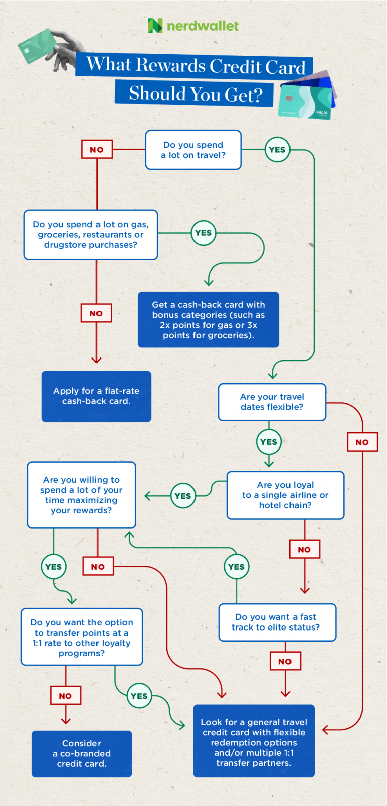Unless you decide to stick with a flat-rate rewards card, you'll want to find a card that matches how you spend your money. Besides travel purchases, grocery stores, restaurants and gas stations are some of the most common bonus categories. But you can also find cards that rewards other purchases, like online shopping or entertainment.