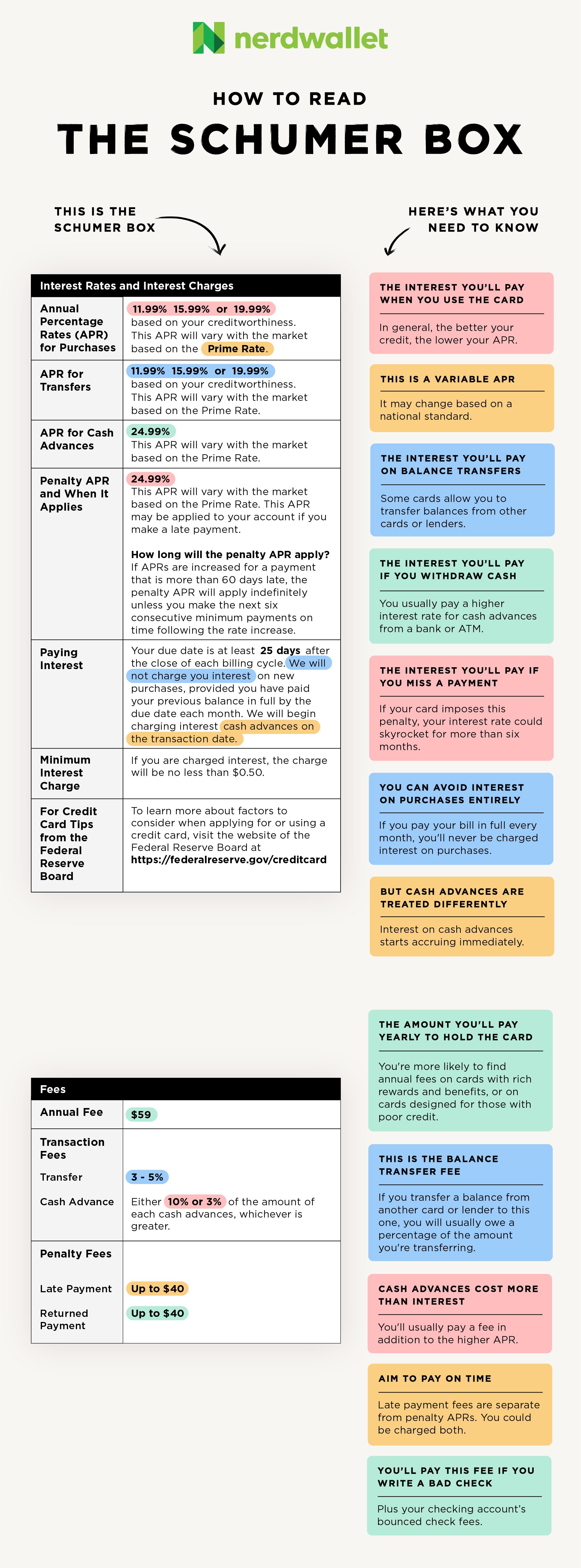 But when it comes to these kinds of credit card terms and conditions, you sometimes need a cheat sheet on reading cheat sheets. Here's our guide to reading and understanding the Schumer box.
