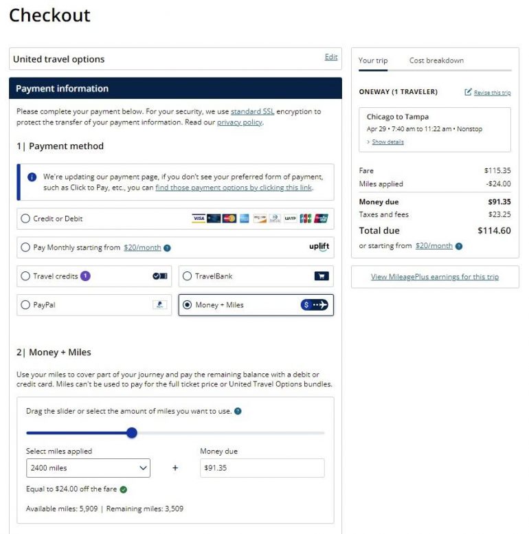 United also allows MileagePlus members to pay for certain flights using a mixture of miles and money, which is a nice perk for casual and serious miles collectors alike. If you’re looking to save on a multi-city itinerary, you should try to see if your travel qualifies for the United Excursionist Perk to save even more miles.