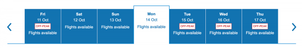 Points required for peak or off-peak awards depend on the dates you plan to travel. According to British Airways, two-thirds of the year is off-peak, but which two-thirds will depend on your destination. Fortunately, if your travel dates are flexible, you can search for only off-peak fares if your goal is to stretch your Avios further.