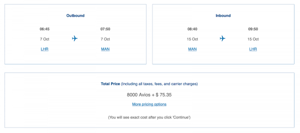 Shorter distances, such as flights from London to Manchester, start at 8,000 Avios for off-peak economy round-trip travel. Keep in mind, too, that this airline is notorious for large fuel surcharges on international flights.