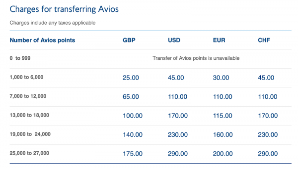 You’ll pay a fee for transferring Avios to those not listed on your Friends and Family List. The amount will depend on how many you’re transferring, as per the chart below: