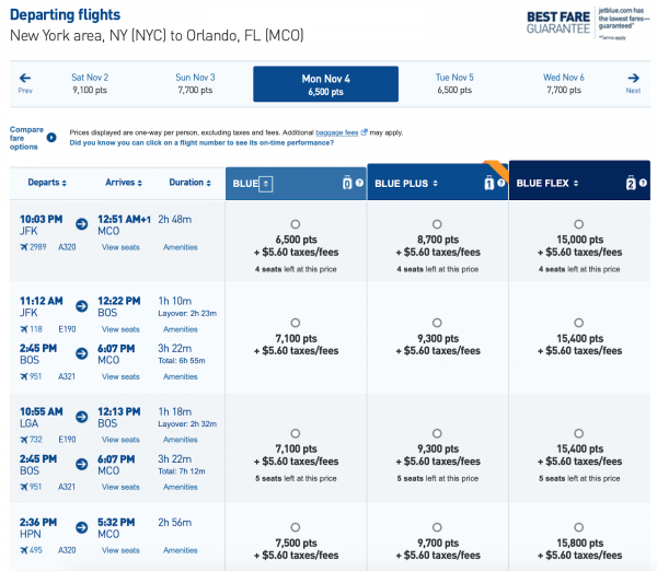 If you don’t have enough points to book your flight, you can also opt to pay for airfare with a combination of cash and points (though Blue Basic fares are not eligible to be booked on points or with a combination of cash and points).